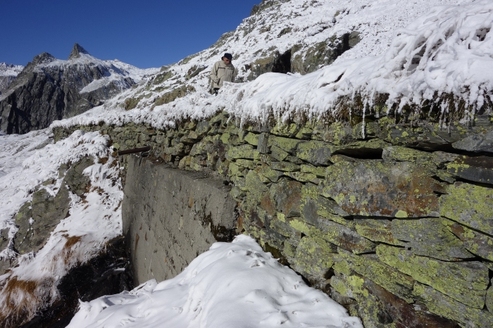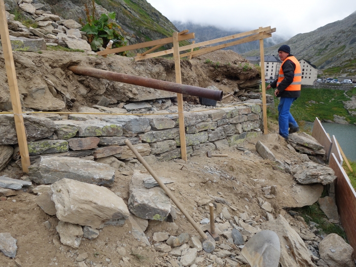 Die „Promenade des Chanoines“ am Grossen Sankt Bernhard: Instandstellung von Stützmauern auf 2‘469 Meter über MeerEinst war der Grosse Sankt Bernhard eine der wichtigsten Übergänge zwischen Italien und Nordeuropa. Seit dem Bau des Strassentunnels um 1964 gestaltet sich die Reise einiges schneller und komfortabler. Oben auf dem Pass befindet sich das Hospiz, in welchem Reisende Obdach und Hilfe fanden. Die etwa 440 Meter lange «Promenade des Chanoines» wurde ungefähr gleichzeitig wie das Hospiz unter der Leitung des Heiligen Saint Bernard de Methon um das Jahr 1050 gebaut, um die nahegelegene Wasserquelle zu erschliessen. Der Weg wurde von den Mönchen talseitig mit Mauern im felsigen Gelände abgestützt, deren Höhe zwischen 40 Zentimeter und 6 Meter variiert. |