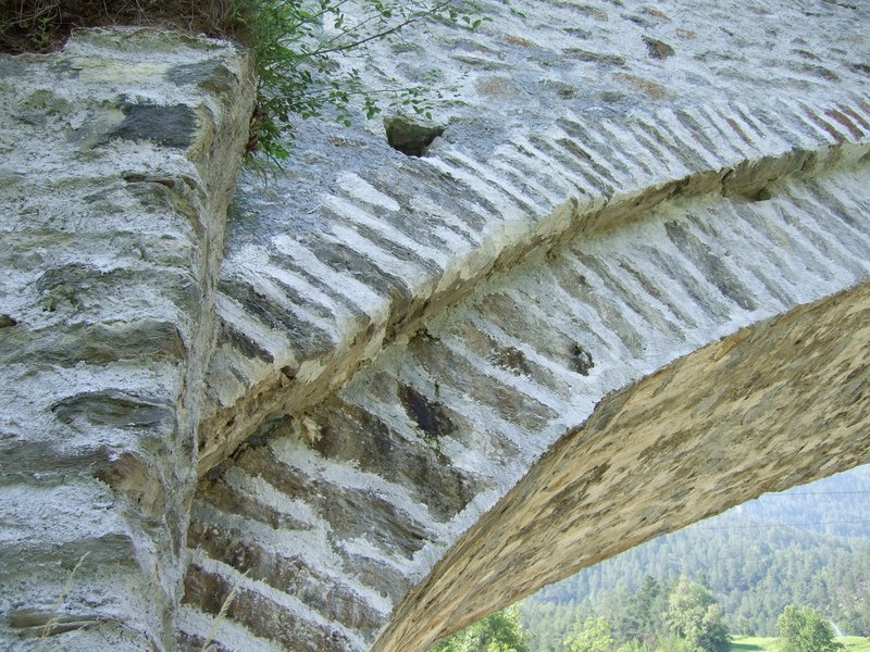 - Il Punt di Val di Lei lungo la vecchia strada di fondovalle (Avers GR) è stato intonacato con la tecnica a pietra rasa.