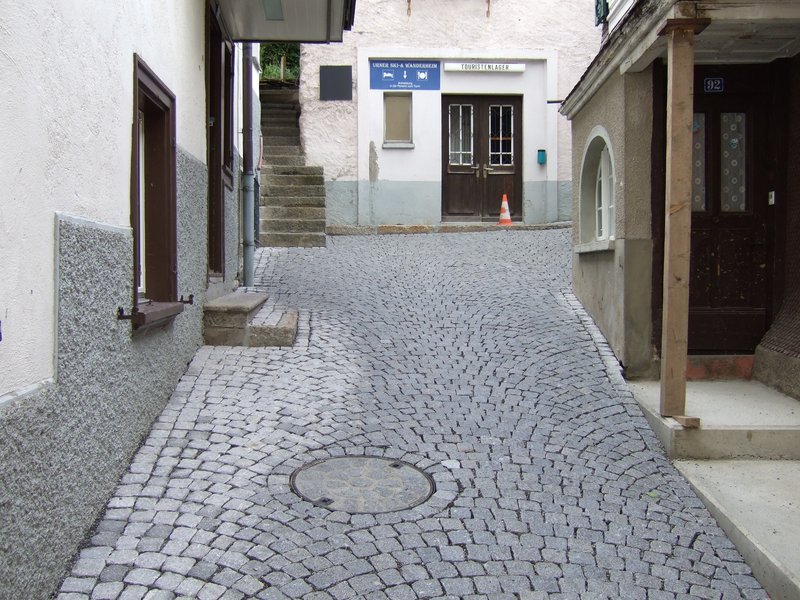 - Per la pavimentazione del paese di Hospental (UR) si è scelto un selciato non legato, in genere più duraturo delle lastricature legate.